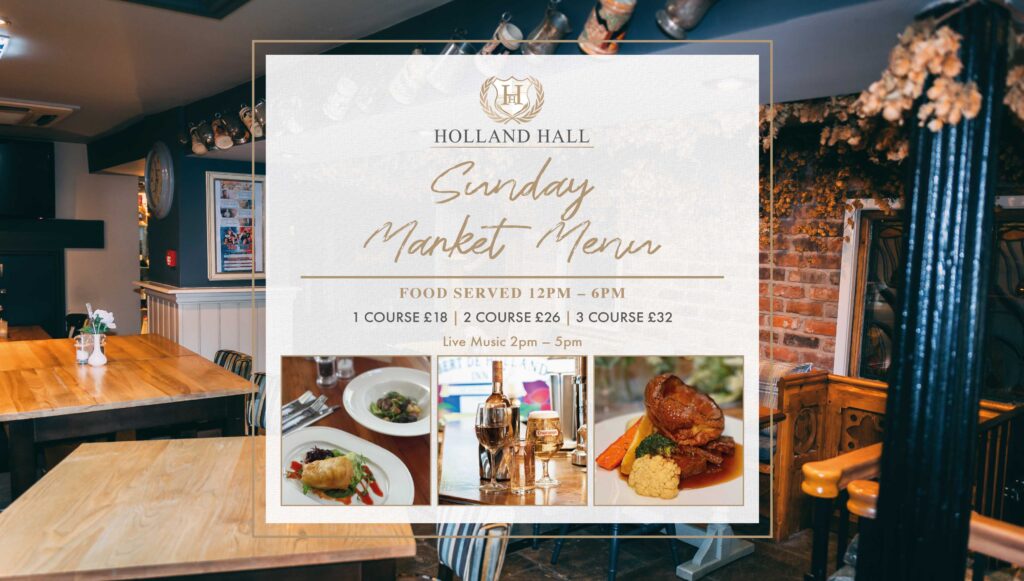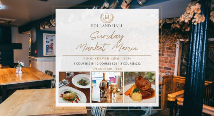 Sunday Market Menu available every Sunday at The Pub at Holland Hall One Course £18 | Two Course £26…
