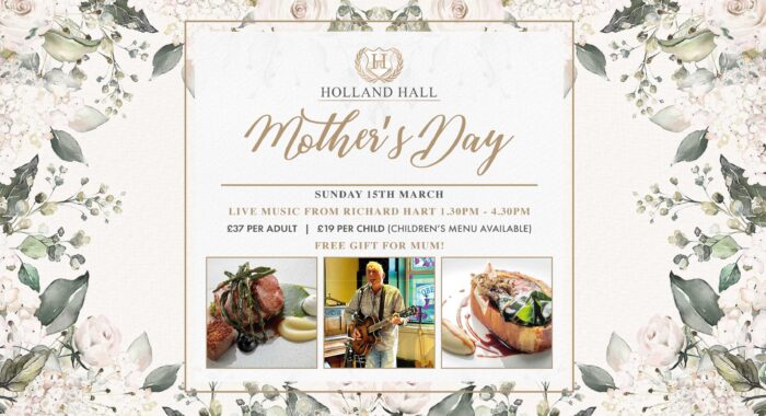 Mother’s Day at Holland Hall Sunday 15th March £37 per Adult – £19 per Child (Children’s Menu available)…